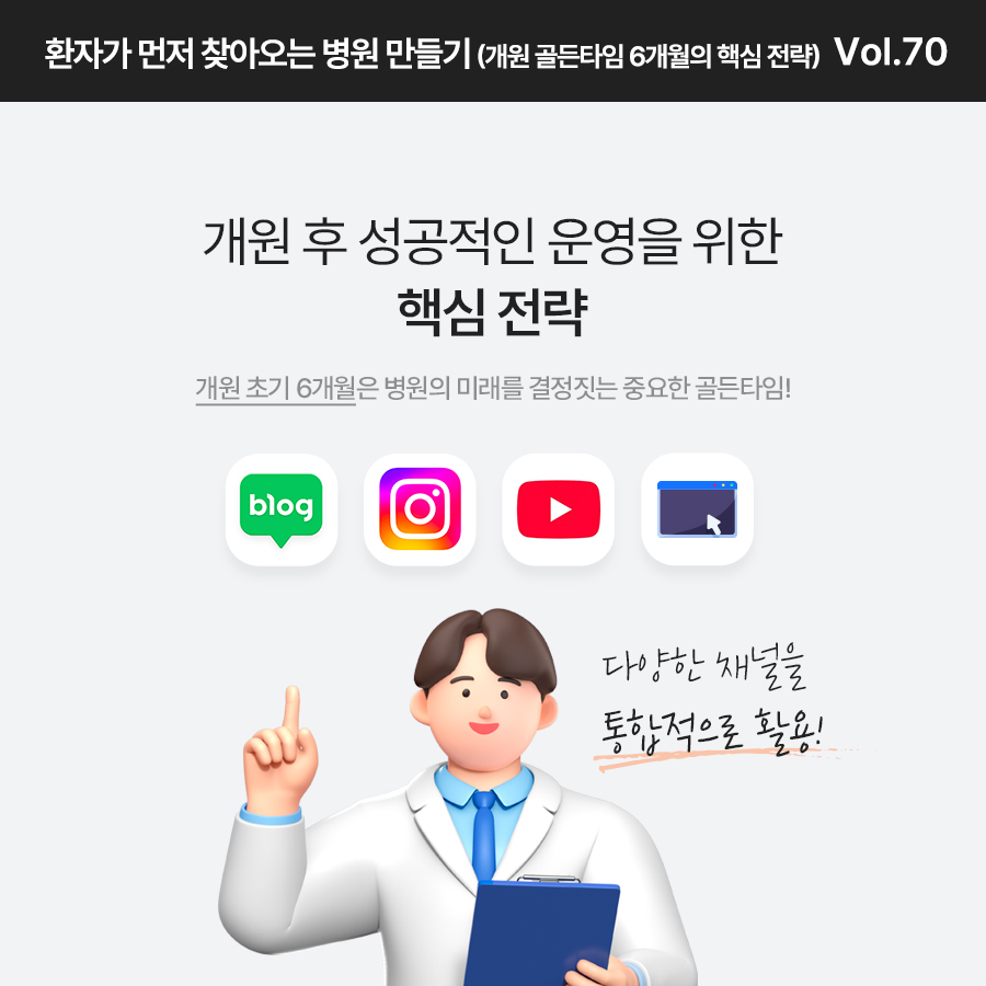블로그, SNS, 홈페이지 등 다양한 채널을 통합적으로 활용해 병원을 알리는 것이 중요한데요.