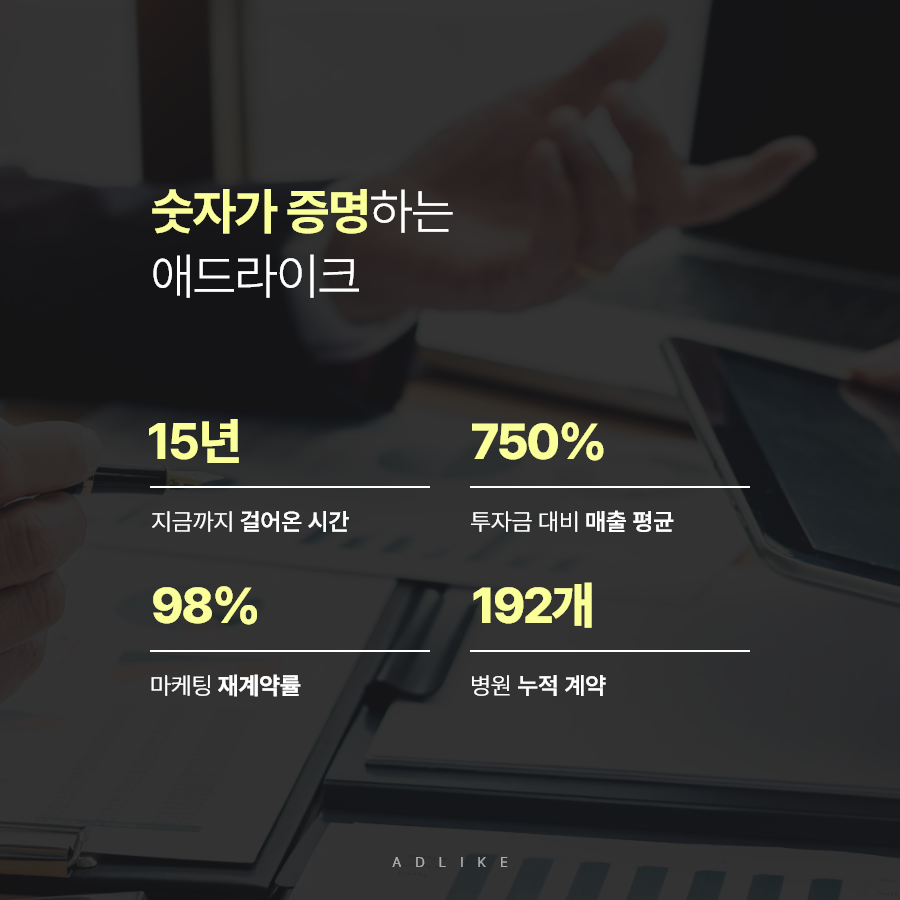 안녕하세요. 15년간의 노하우로 병원의 성공을 함께 만들어가는 애드라이크입니다.