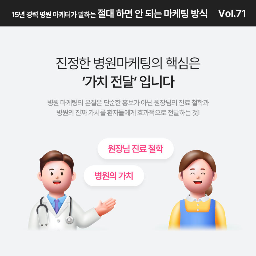 진정한 병원마케팅의 핵심은 '가치 전달'입니다.